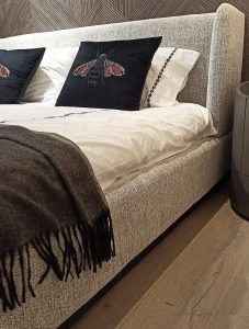 Dzięki spójności kolorystycznej między kolekcjami łatwo tworzyć kompozycje łączące różne faktury przy zachowaniu jednolitej palety barw. To szczególnie ważne w dużych realizacjach – gdzie tkaniny pojawiają się w wielu strefach, a całość musi zachować elegancki, jednolity charakter.
